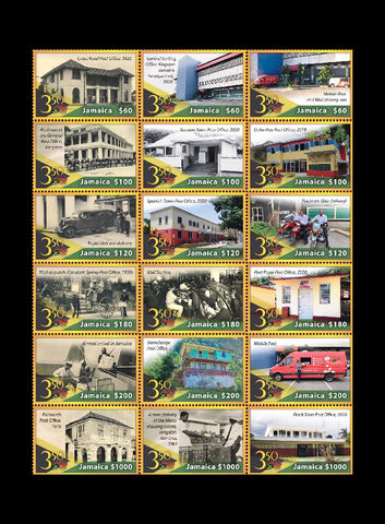Jamaica 350th Anniversary of The Postal Service 18 Value Sheetlet